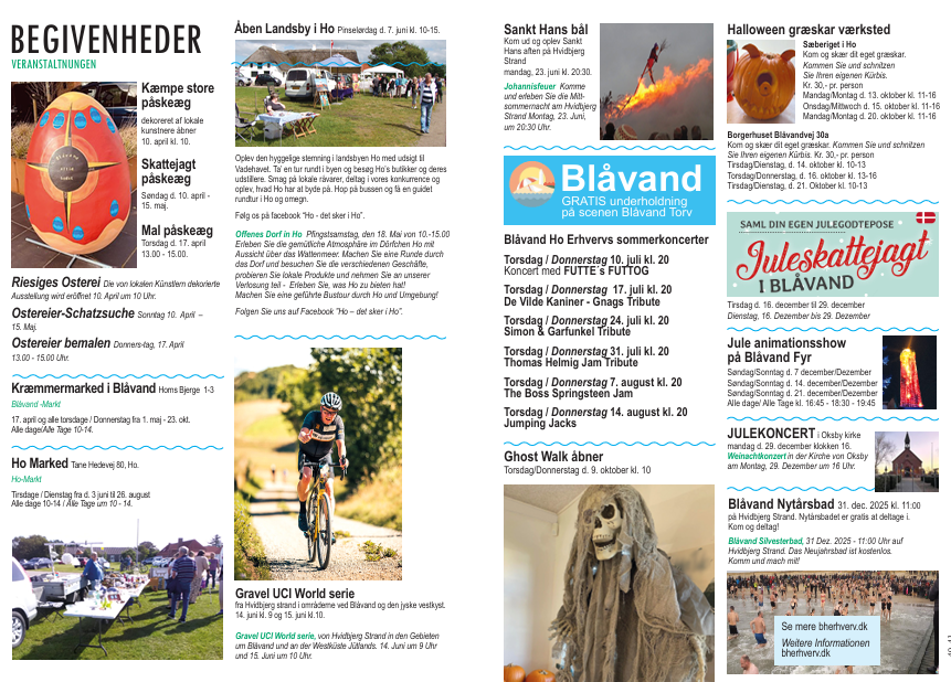 Blåvand og Ho området er et besøg værd året rundt. De mange butikkerne, cafe´er, restauranter og servicevirksomheder, holder åbent og giver den gode oplevelse.